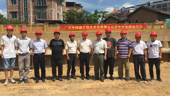 2017年8月14日,總包公司赴梅州嘉應(yīng)學(xué)院醫(yī)學(xué)院附屬醫(yī)院住院大樓項目現(xiàn)場進行了應(yīng)急救援演練,參演人員有公司領(lǐng)導(dǎo)曾國勝副總經(jīng)理、李偉君副總經(jīng)理、總工室成員及項目現(xiàn)場人員。