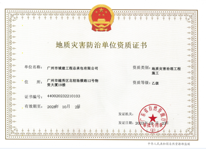 2023年8至10月,公司成功獲批地質(zhì)災(zāi)害治理工程施工乙級、監(jiān)理乙級、地質(zhì)災(zāi)害評估和治理工程勘查設(shè)計乙級資質(zhì)。