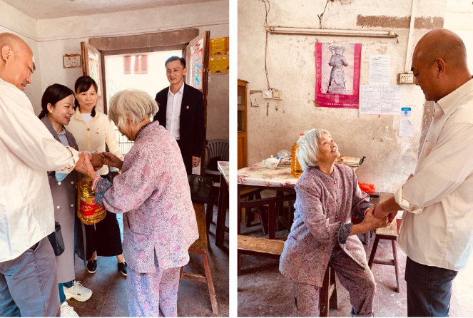 萬錦英老人家中有三口人,其 53歲的兒子在外打工的同時(shí)要照顧視力一級殘疾的孫子,所以老人在黎塘村老屋的家中常常是一個(gè)人居住,平時(shí)飲食起居全靠老人自己。蔡慶立同志駐村后經(jīng)常關(guān)心老人的身體生活狀況,噓寒問暖,甚至為老人量腳上網(wǎng)購買合適的鞋;老人屋后出入的木橋破舊,存在安全隱患,駐村工作隊(duì)為老人籌資修建了結(jié)實(shí)的鐵板橋和護(hù)欄。老人拉著前來探望她的陳蓉書記,眼含熱淚,對幫扶單位和駐村工作隊(duì)一再表示感謝。老人腰腿不好,我們離開時(shí)鎖好她家后門不讓她送,她堅(jiān)持走出二樓門外,站在新修的鐵橋邊,依依不舍目送我們離開……